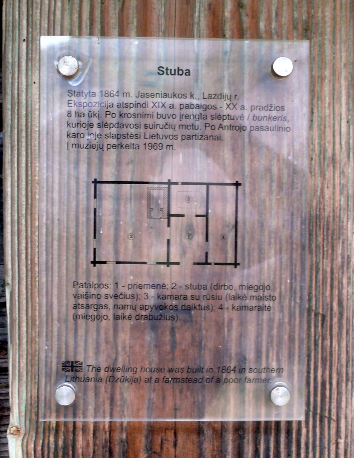 Muziejuje kaimo trobesiai priklauso Rudaminos sodybai, Dzūkijos ekspozicijai. Dendrochronologiniai pastatų tyrimai atlikti 1969 m. Įrašas medienos pavyzdžių inventorizacinėje knygoje byloja: „Lietuva, Lazdijų r., Jaseniauka, Onos Karaliūnienės gyv. namas, 1969 m”. Medienos mėginiai tyrimams imti iš dviejų pastatų: gyvenamo namo ir tvarto. Nėra aišku ar tvartas į LLBM dėl kokių nors priežasčių nebuvo pervežtas, ar yra įvykusi klaida ir pervežtas kluonas klaidingai buvo pavadintas tvartu.